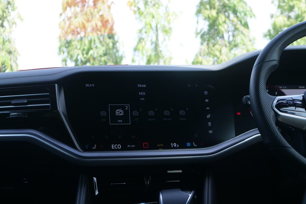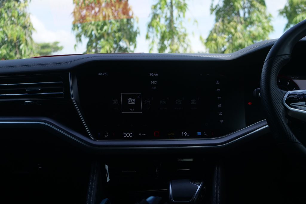 Infotainment dan cluster untuk model SUV ini adalah antara yang paling besar di dalam market, membolehkan seluruh kawasan boleh dilihat dengan jelas, dipasang bersama kemasan seluruh interior yang “rugged” dan berfungsi dengan baik. Selain daripada itu, kebanyakan kawalan yang ada pada Touareg R Line, mampu dilihat berada pada model Volkswagen lain juga.