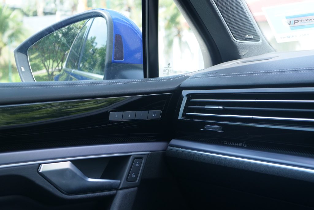 Untuk sebuah model kereta berharga RM470,000, Touareg R Line tiada fungsi “auto-lock” dan “auto-unlock”. Bermakna, setiap keluar-masuk SUV ini memerlukan sentuhan jari, samada pada picu pintu atau kunci. Berbeza dengan beberapa model jenama lain pada harga RM120,000, memberikan fungsi sebegini.