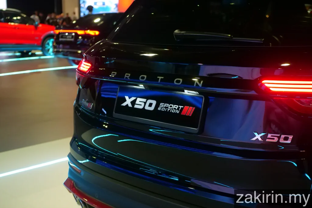 Proton X50 kini hadir dalam versi Sport Edition, menampilkan elemen reka bentuk unik seperti spoiler baharu, rim lebih besar, dan sentuhan dalaman sporty. Model ini juga menawarkan prestasi yang dipertingkatkan, menjadikannya pilihan utama bagi mereka yang inginkan SUV dengan prestasi tinggi dan gaya agresif