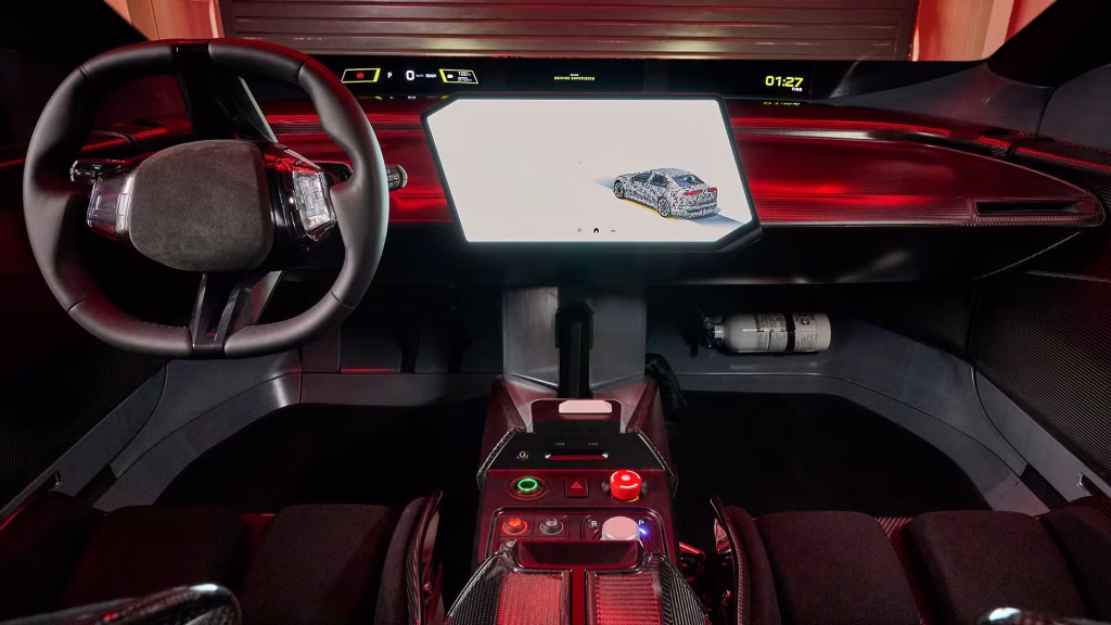 Flush-mounted door handles and camera-based side mirrors further contribute to the vehicle’s aerodynamic profile, while 24-inch alloy wheels with active aero inserts adjust dynamically to optimize cooling and reduce turbulence. The rear design is equally futuristic, with slim, wraparound LED taillights that double as interactive displays, capable of projecting signals or even messages to other road users, enhancing safety and communication in urban environments.
