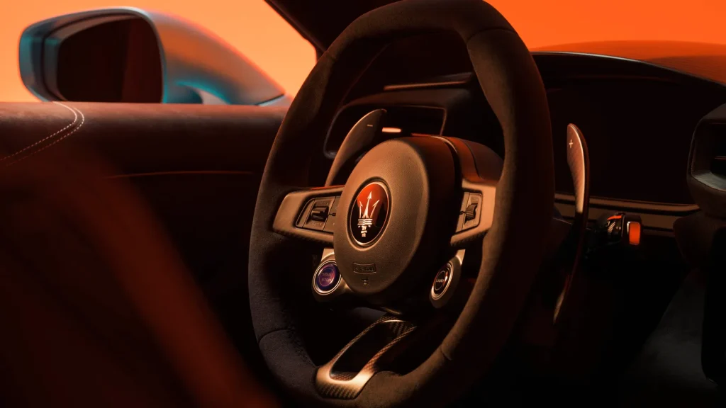 Maserati has introduced two new colours to mark the MCPura’s arrival. The coupe and Cielo convertible versions are available in “AI Aqua Rainbow,” a shimmering light blue, while a bold “Devil Orange” injects further vibrancy into the lineup.
