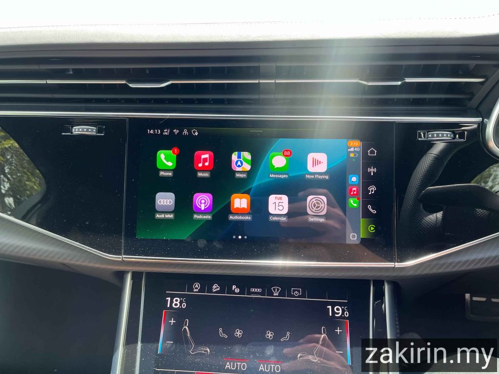 The dual-screen MMI touch response system dominates the center stack. The upper screen handles navigation, media, and smartphone integration (both Apple CarPlay and Android Auto), while the lower one controls climate settings and other functions. The display is crisp and responsive, with tactile haptic feedback when pressed. It looks futuristic, but it takes some getting used to—especially when adjusting settings while driving.