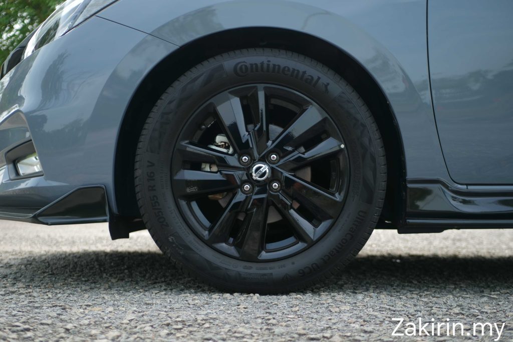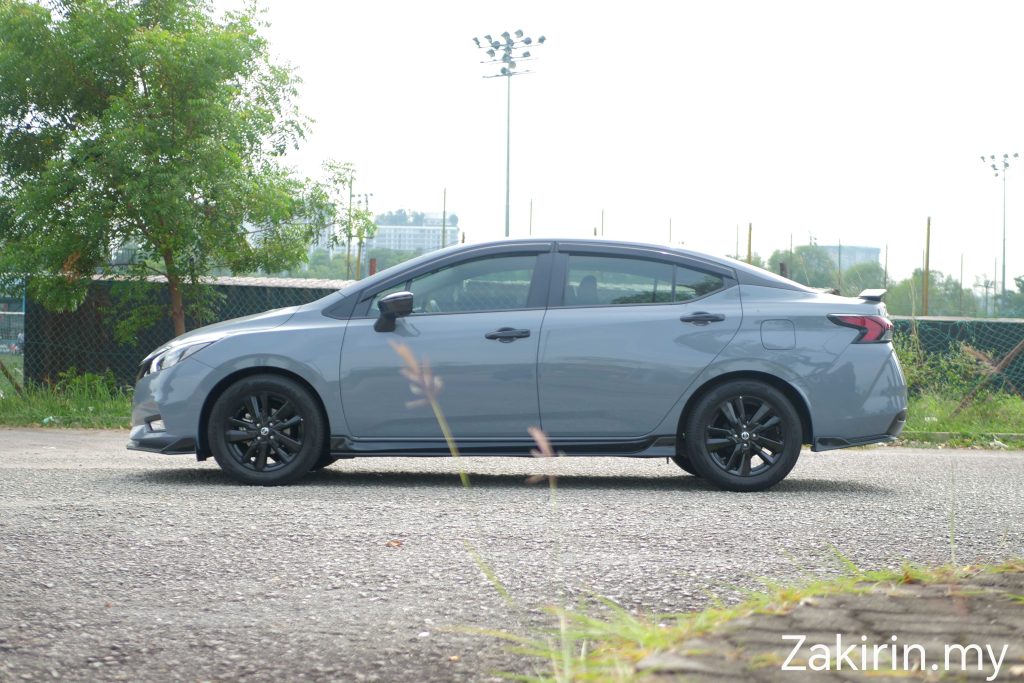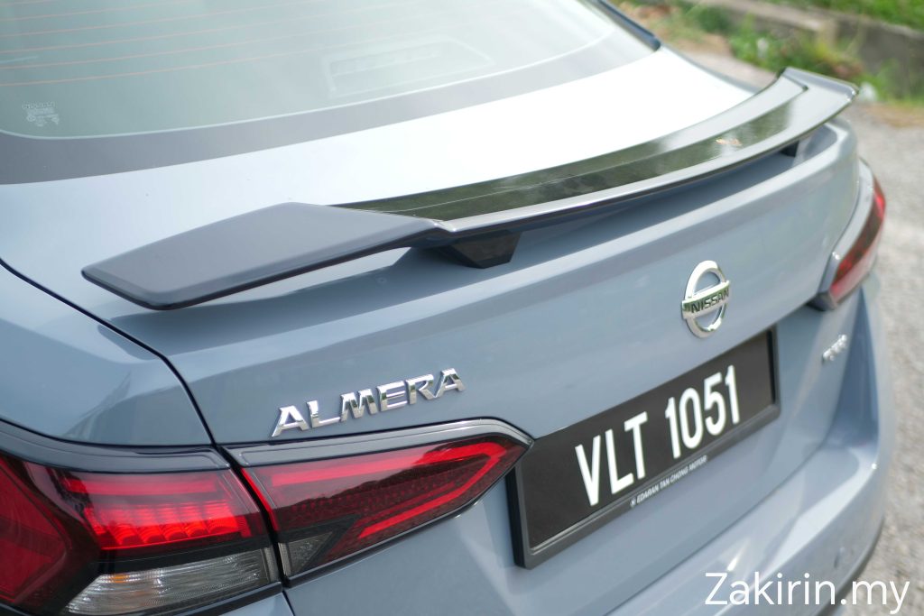 Nissan has dressed the Almera in gloss black exterior trim, including the front V-motion grille, door mirrors, side skirts, rear spoiler, and rear diffuser.