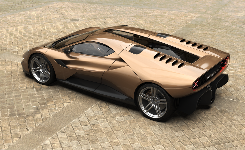 Visually, the GP1 is a love letter to wedge-shaped supercars, blending design references from icons like the Lancia Stratos Zero and Lamborghini Countach, as well as modern hypercars from Rimac and Pagani. The design, led by Angel Guerra—formerly of Bugatti and Rimac—evokes the sleek lines of the past while incorporating one of the largest rear diffusers ever fitted to a road car.