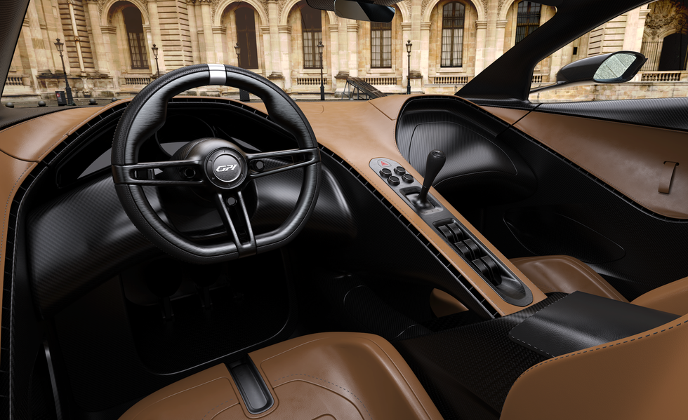 Despite its performance focus, the GP1 isn’t just a track toy. With a dry weight target around 1000 kg, it’s more than 40% lighter than many modern V12 giants and promises both comfort and touring capability.