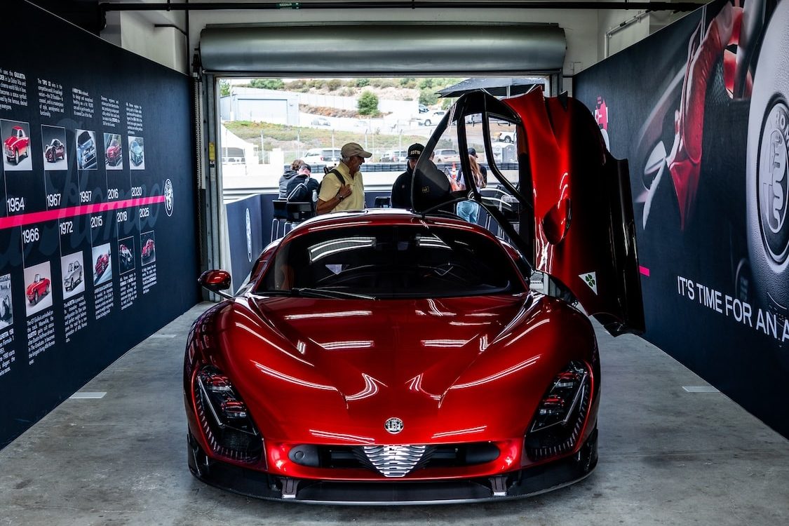 Across four of the most celebrated gatherings of the week, the Stradale turned heads and stole the spotlight. Motorlux featured it alongside the Giulia, Stelvio, and Tonale; Hagerty House offered car enthusiasts an up-close encounter at Pebble Beach; The Quail, A Motorsports Gathering displayed it among rare and iconic automobiles; and at WeatherTech Raceway Laguna Seca, it even took to the track, honoring Alfa Romeo’s rich racing heritage.