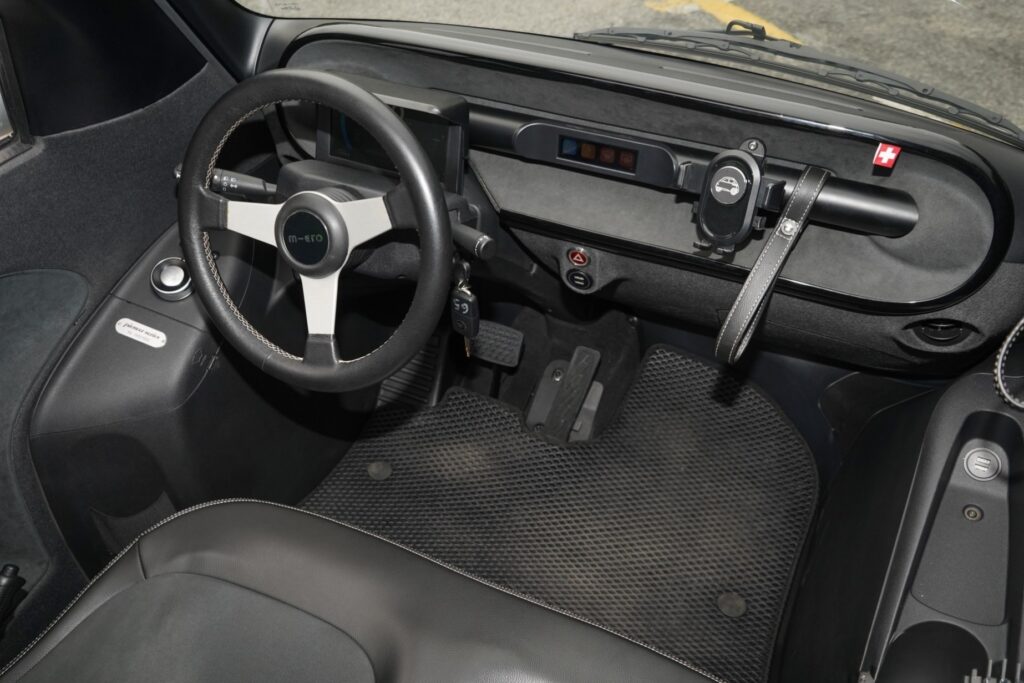 In its current 2.0 guise, the Microlino departs from the tubular frame of the 1.0 by adopting a unibody chassis — claimed to be a first in the heavy quadricycle segment — bringing gains in structural rigidity and safety. The suspension architecture is also simplified, featuring MacPherson struts on both front and rear in place of the previous pushrod front setup and rigid rear axle.